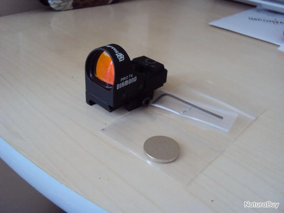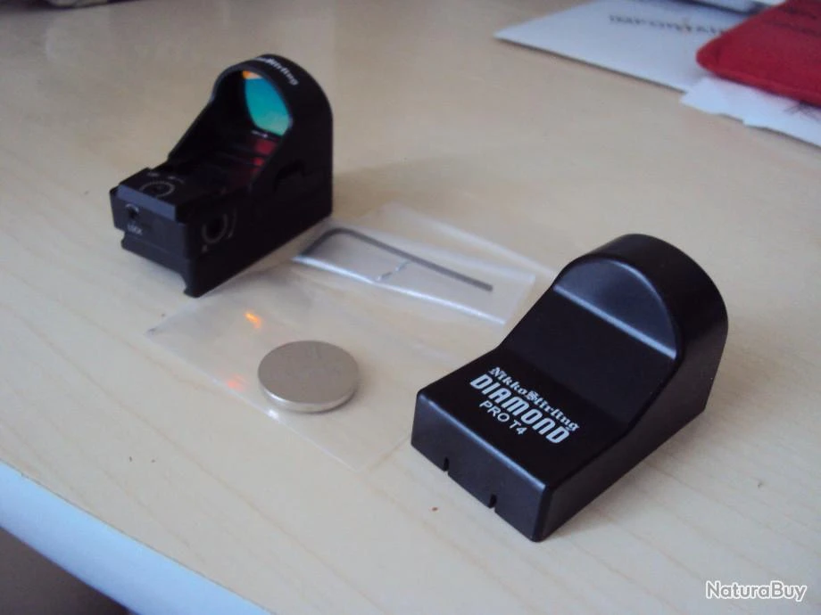 Vends point rouge panoramique, NIKKO STIRLING, PRO T4 DIAMOND, 4 Moa, avec cache de protection, clés de réglage et pile neuve, état neuf, servi 2 fois. Prix neuf : 490 €, vendu 350 €.